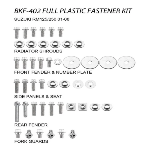 Як правильно замовити ACCEL КОМПЛЕКТ БОЛТІВ DO ПЛАСТІКОВ SUZUKI RM 125/250 '01-08 (BKF-402) на сайті?
